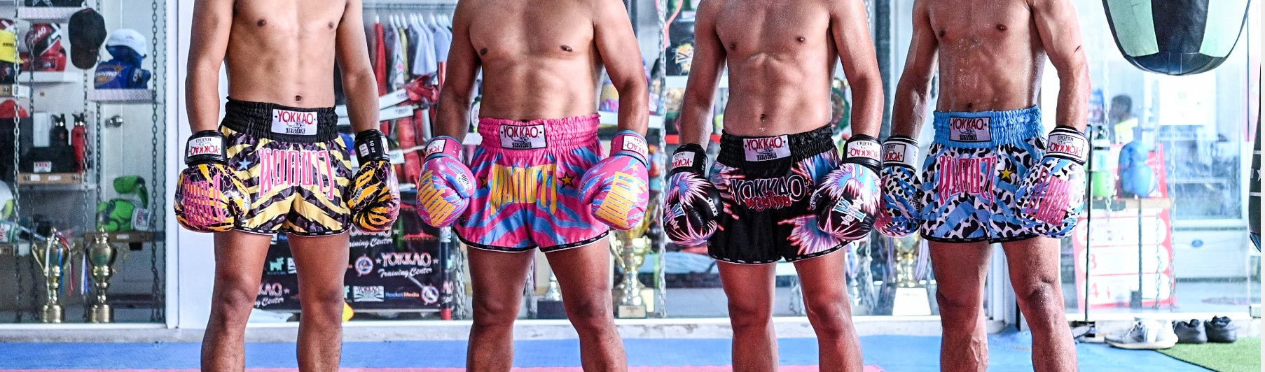 Combat sports essentials including hand wraps, mouthguards, gym bags, and recovery tools...